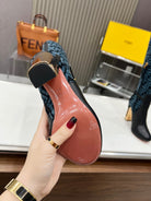 FENDI knee boots high heel monogram blue black cowhide 521217