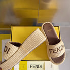 FF Sunshine 65 Beige Cotton Brown Leather Fibre Flatform Slide