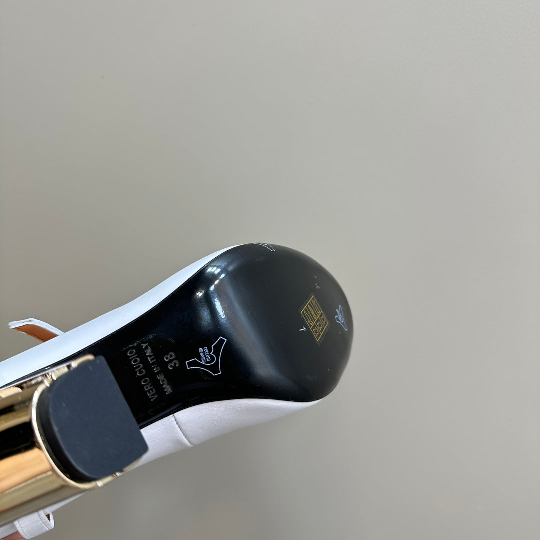 FENDI BAGUETTE HIGH HEELS 85MM IN WHITE LAMBSKIN WITH GOLD HARDWARE