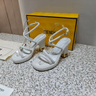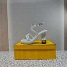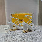 FENDI CHUNKY HIGH-HEELED SANDAL IN WHITE CALFKIN WITH GOLD HARDWARE