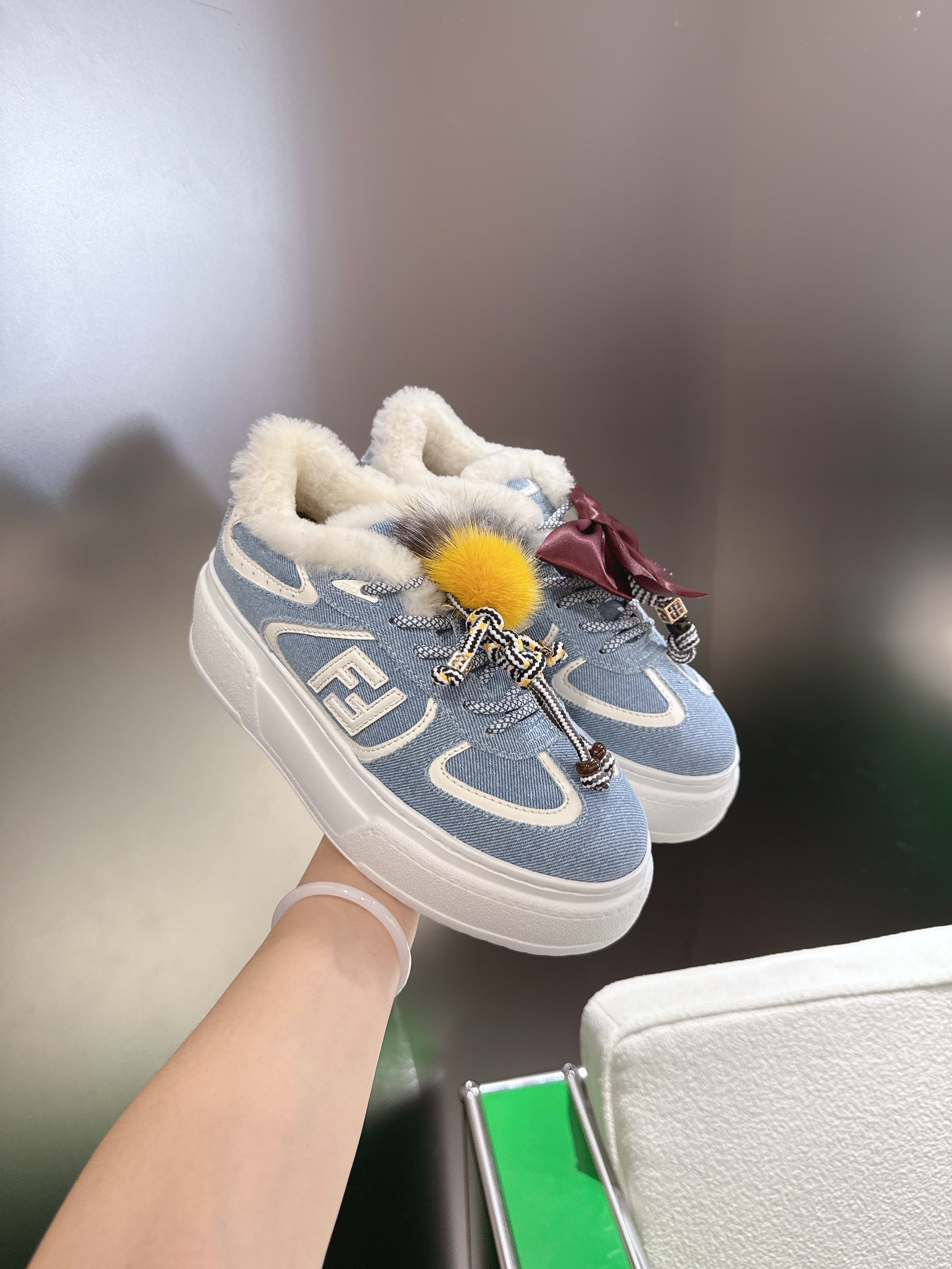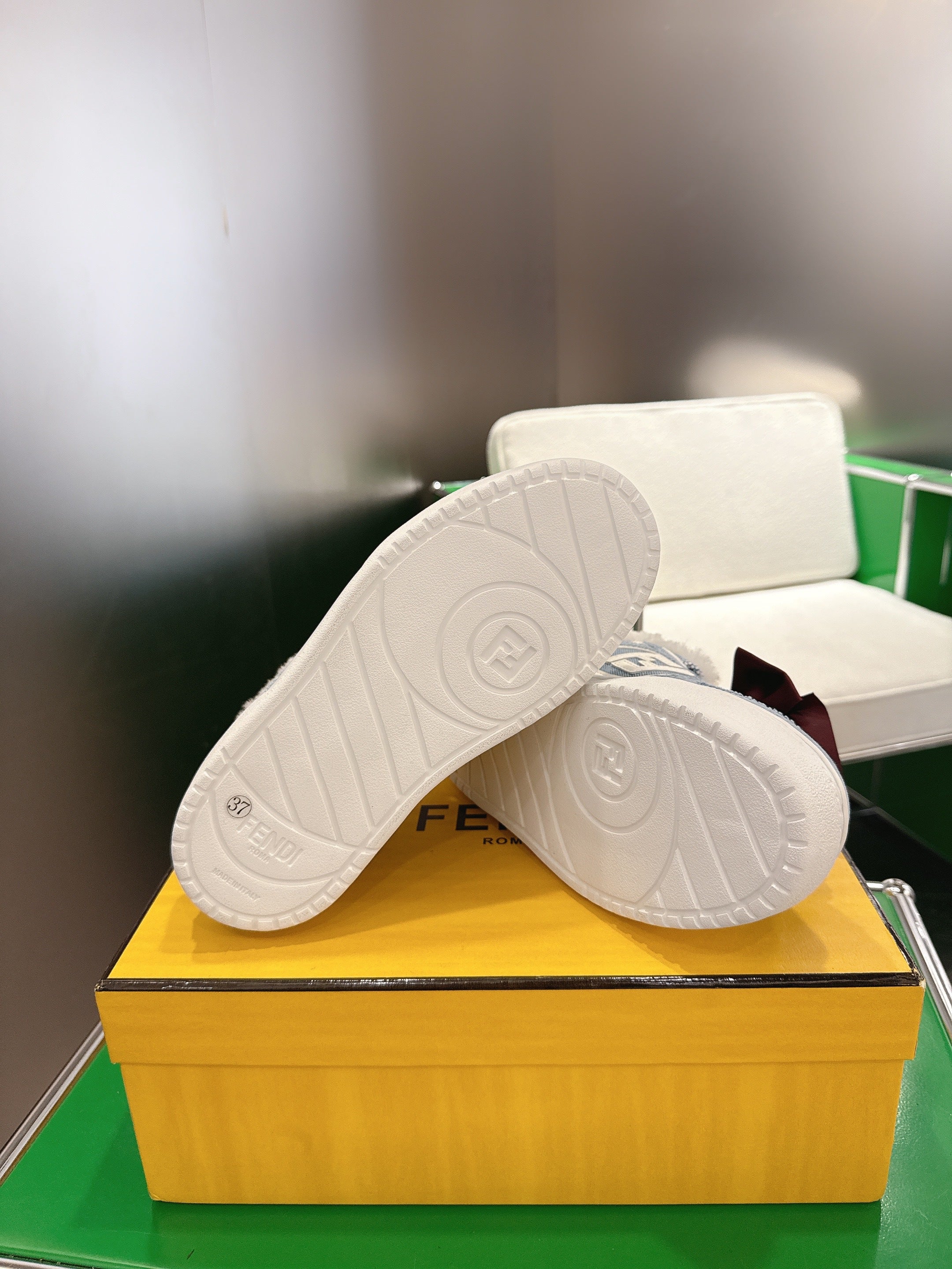 Fendi 2025 Match Platform Sneakers Blue White Denim Fabric Wool 562583