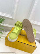 FENDI LOGO SOCK SNEAKER BOOTS IN YELLOWISH GREEN LAMBSKIN
