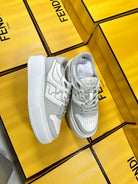 FENDI THICK-SOLDED SNEAKER IN WHITE MIX GREY LAMBSKIN