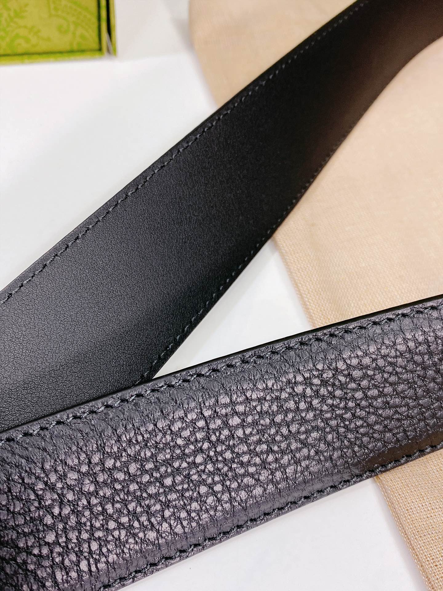 G BELT GOLD BUCKLE BLACK LEATHER 4.0CM