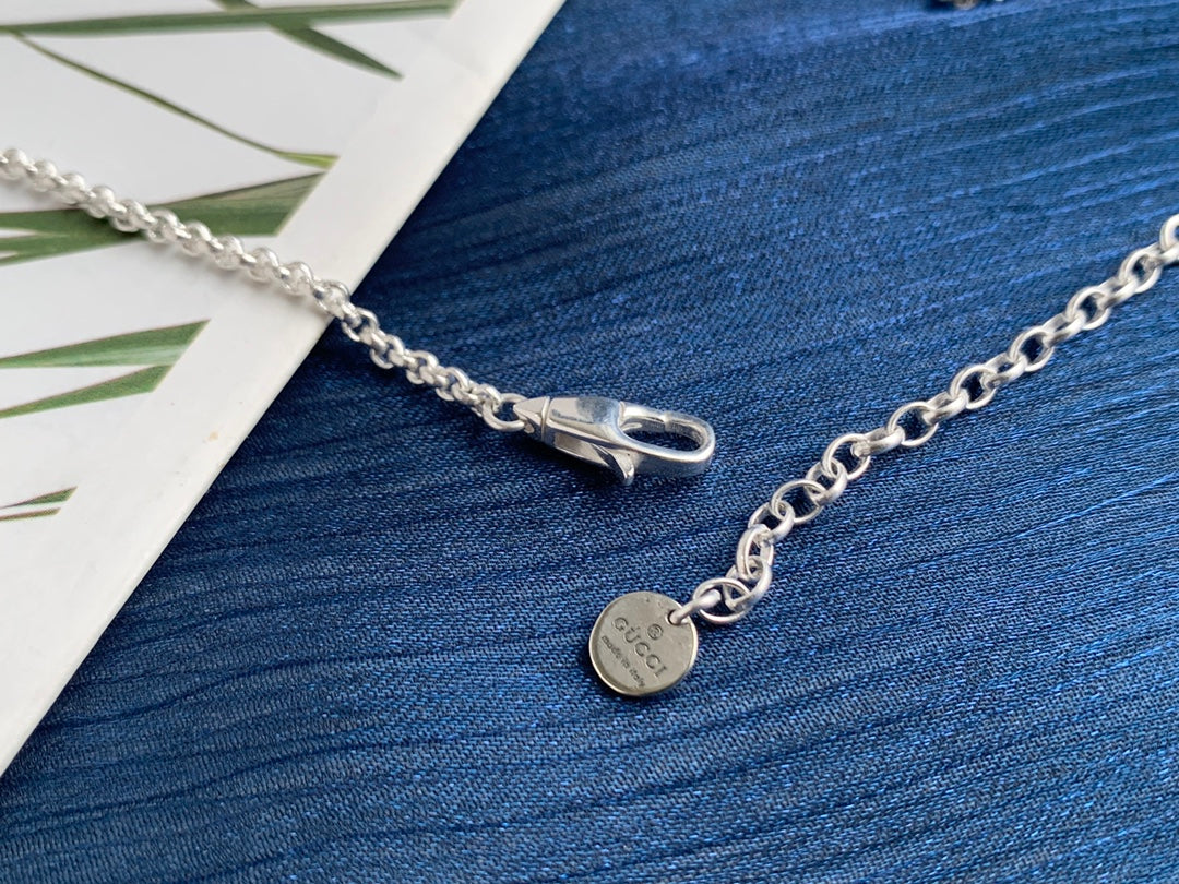 GG PENDANT NECKLACE LOGO ENGRAVED G CHARM TOP PLATE SILVER
