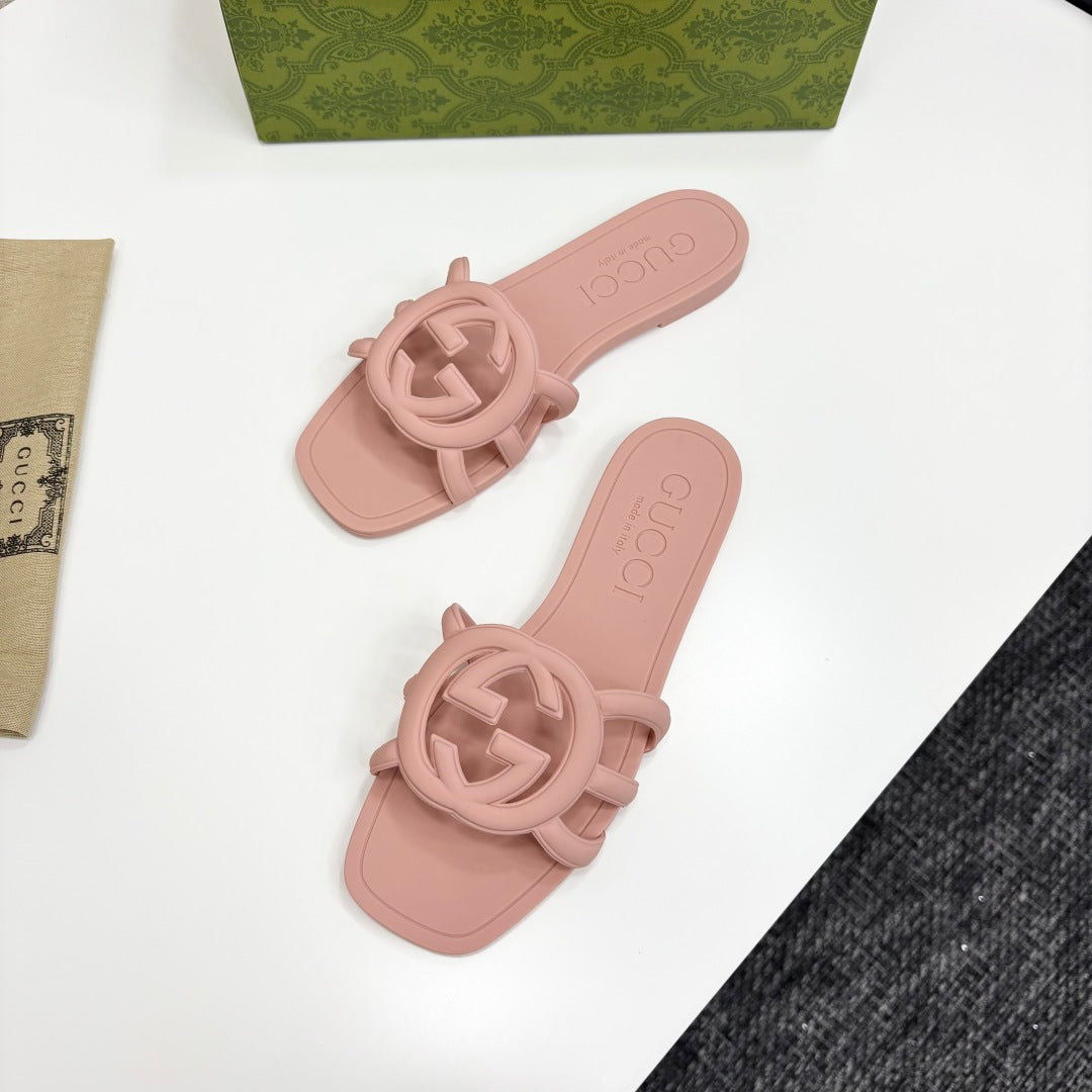 GG INTERLOCKING G SLIDE SANDAL BLACK RUBBER