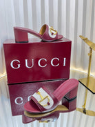 GC 25 Horsebit GG 50mm Sandals Red Canvas Sheepskin 294665