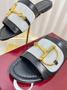 GC 25 Horsebit GG Sandals Black Canvas Sheepskin 294664