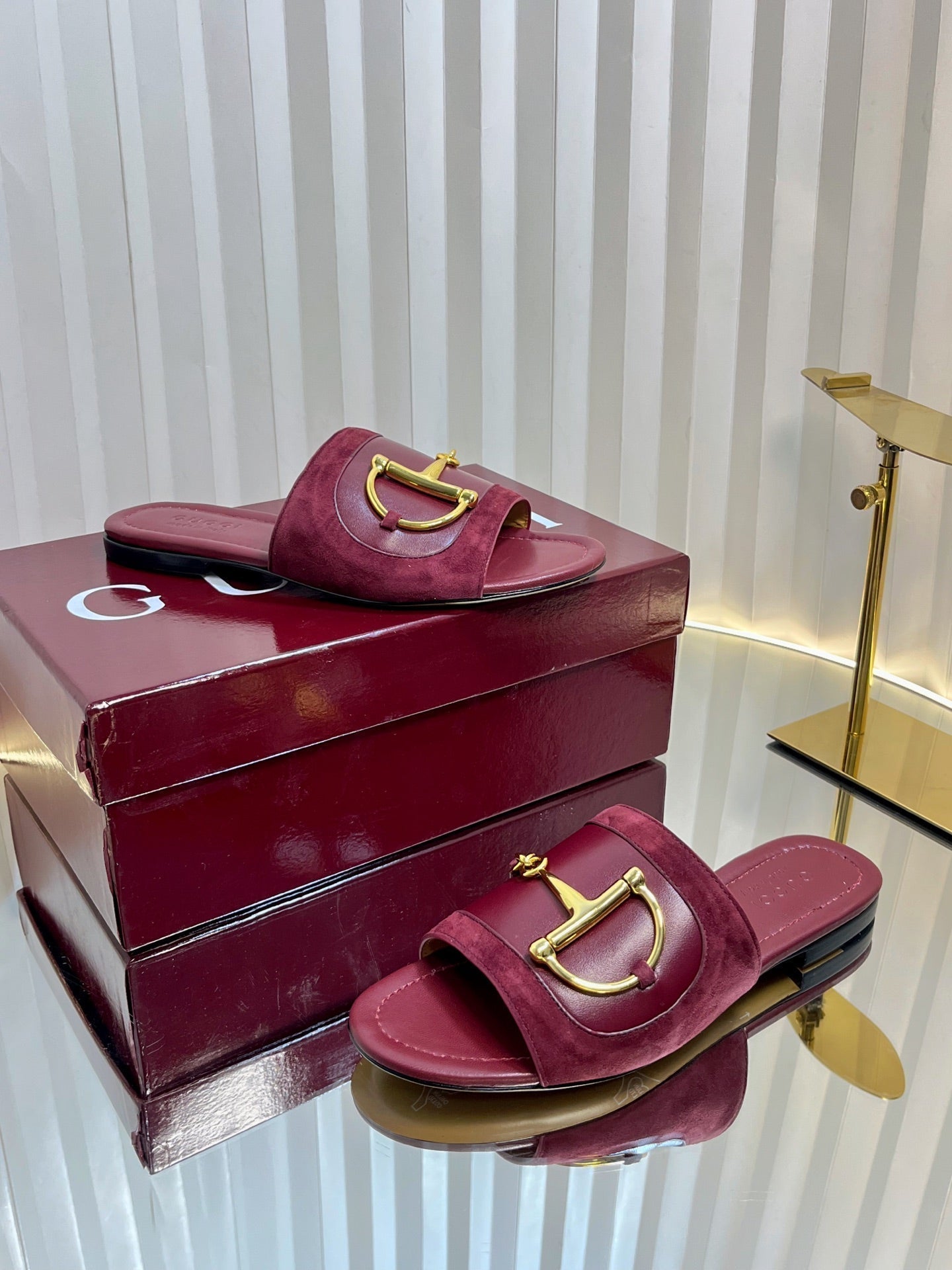 GC 25 Horsebit Sandals 10mm Red Suede Sheepskin 294649