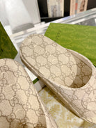 GC 25 Interlocking G 50mm Slide Sandal Monogram Beige Cowhide 292388