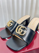 GC 25 Interlocking G Heeled Sandal Black Patent Leather 294642