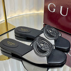 GC 25 Interlocking G Slide Sandal Black Canvas Cowhide 294648