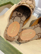 GG & ADIDAS MULE HORSEBIT BUCKLE LIGHT BROWN CANVAS