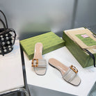 GG BAMBOO BUCKLE FLAT SANDALS WHITE