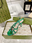 GG CRYSTAL HIGH HEEL SANDAL JADE GREEN CALFSKIN SPECIAL