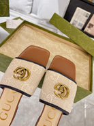 GG EXCLUSIVE SLIDE SANDAL CARAMEL AND CREAM SEDGE