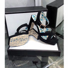 GG HIGH SANDAL BLACK SUEDE WITH PATTERNS