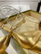 HIGH SANDAL SQUARE HEEL 12 CM IN GOLD CALFSKIN