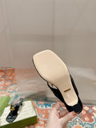 HIGH THONG MULE 55MM IN BLACK CALFSKIN WITH GOLD HARDWARE