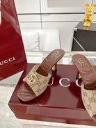 GC 2025 Double G High Heel Sandals Brown Canvas Sheepskin 292466