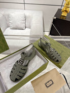 GC 25 Silver Double G Sandal Dark Green Rubber 292429