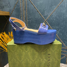 GG HORSEBIT FLATFORM SANDAL COBALT CALFSKIN