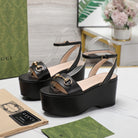 GG Horsebit Wedges Sandals Black