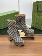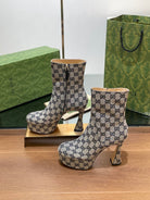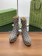 GG SHORT BOOTS 11.5 CM IN BLACK MIX BEIGE MONOGRAM JACQUARD FABRIC