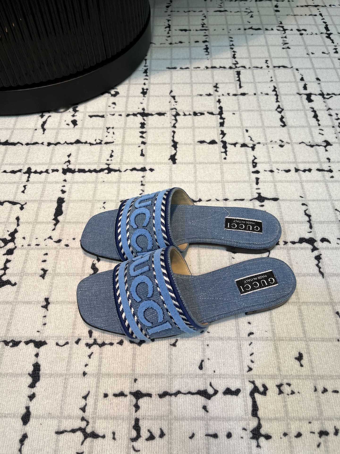 GG SLIDE SANDAL WITH GUCCI SCRIPT TEAL DENIM