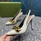 WOMEN'S SLINGBACK 10.5 CM IN WHITE CALFSKIN WITH GOLD HARDWARE