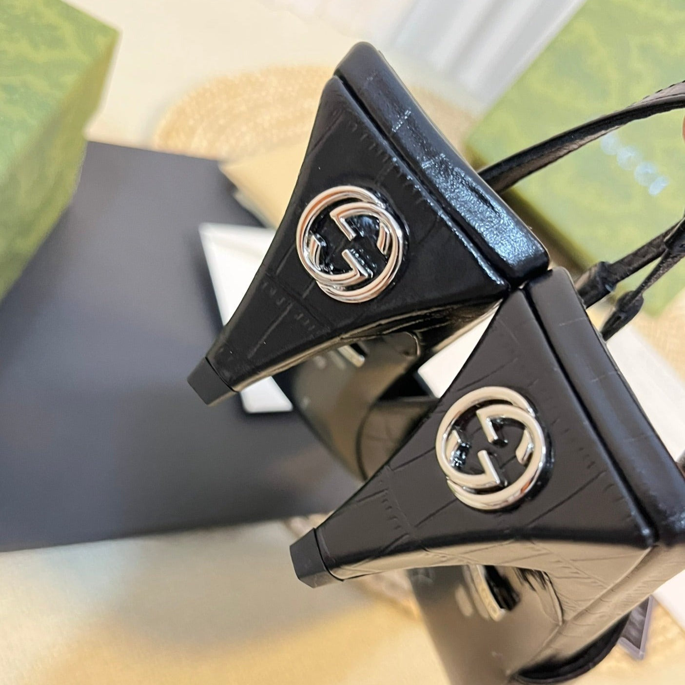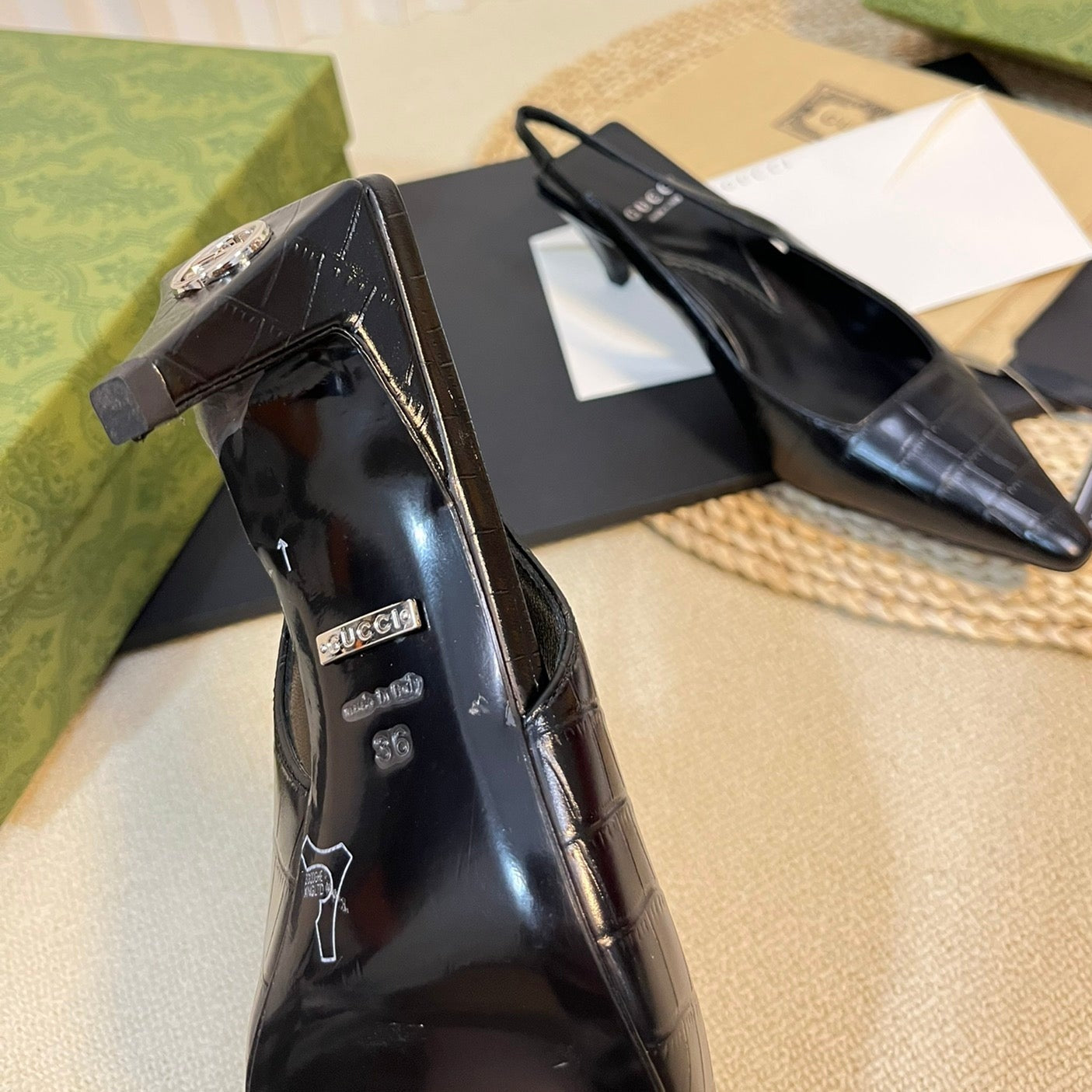 GG Women's G pointed silver-letter Logo slingbacks Azure Blue