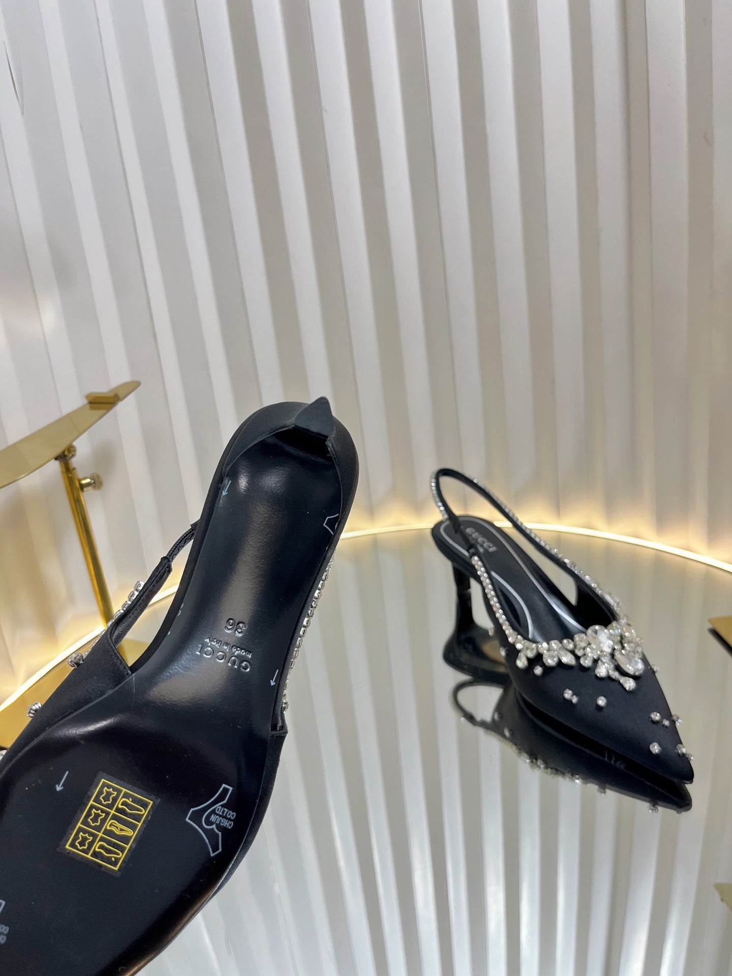 GC 2025 Crystal Embellished 55mm High Heels Slingbacks Black Silk Sheepskin 294526