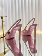 GC 2025 Crystal Embellished High Heels Slingbacks Pink Silk Sheepskin 294524