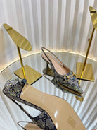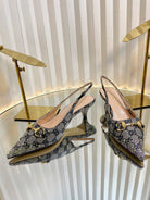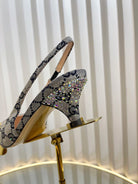 GC Crystal Horsebit Slingback 50mm Beige mix Blue Canvas lambskin 294616