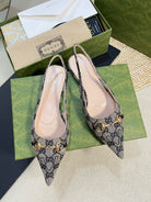 GC Horsebit Slingback Pump 10mm Beige mix Blue Canvas Sheepskin 294553