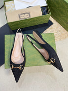 GC Horsebit Slingback Pump 10mm Black Canvas Sheepskin 294552
