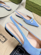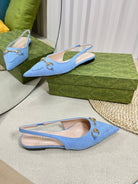 GC Horsebit Slingback Pump 10mm Blue Canvas Sheepskin 294542