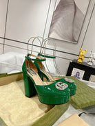 GG CRYSTALS PLATFORM PUMPS JADE GREEN CALFSKIN