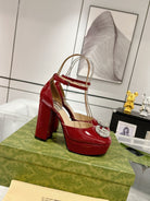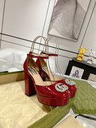 GG CRYSTALS PLATFORM PUMPS SCARLET CALFSKIN