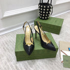 GG HIGH HEEL SLINGBACK BLACK CALFSKIN WITH CHAIN