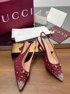 GG Horsebit Slingback 45MM Red Ebony Monogram Canvas Point Toe Crystal-Embellished