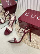 HIGH SANDAL 10 CM IN BERRY RED GLOSSY CALFSKIN