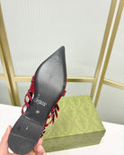 STRAPPY FLAT SLINGBACK IN SCARLET RED GLOSSY CALFSKIN