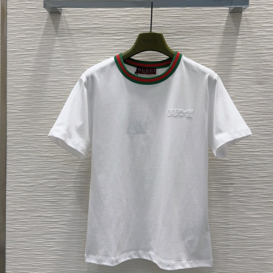 Gucci 25 Three-dimensional Embossed Letter Short-sleeved Top Cotton