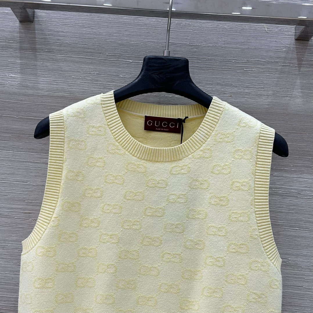 Gucci Sleeveless Vest Dress Beige Polyester Fiber