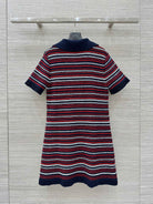 Gucci 25 Knitted V-neck Dress White Red Wool