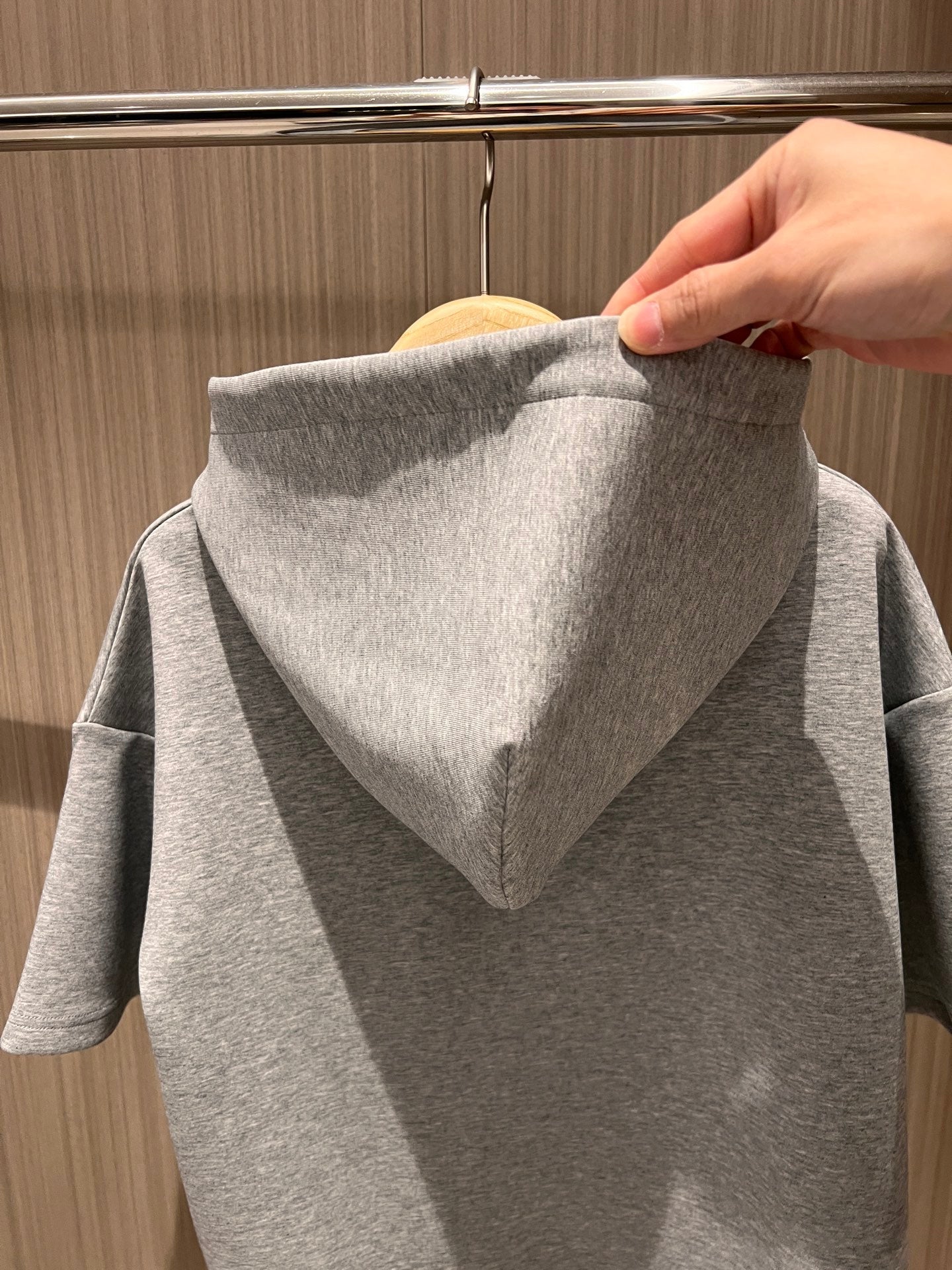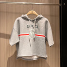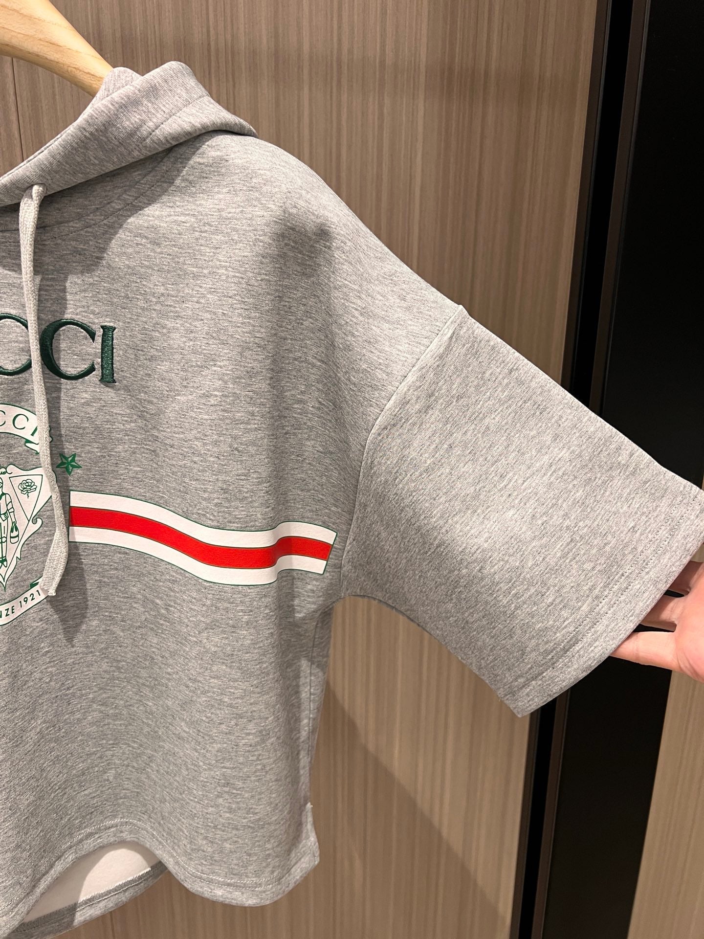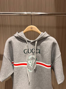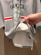 Gucci Embroidered Logo Badge Striped Print Hooded Gray Cotton