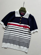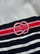 Gucci Striped Polo Knitted Top Dark Blue White Cotton