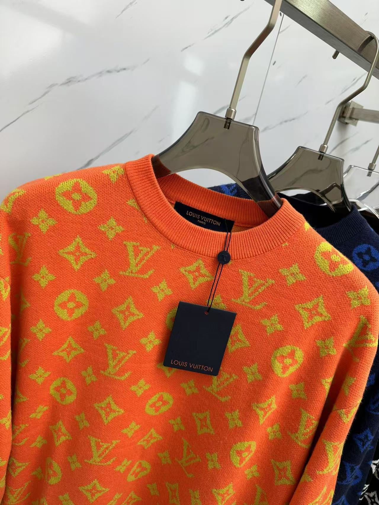 LV Orange Monogram Knit Crew Neck Sweatshirt