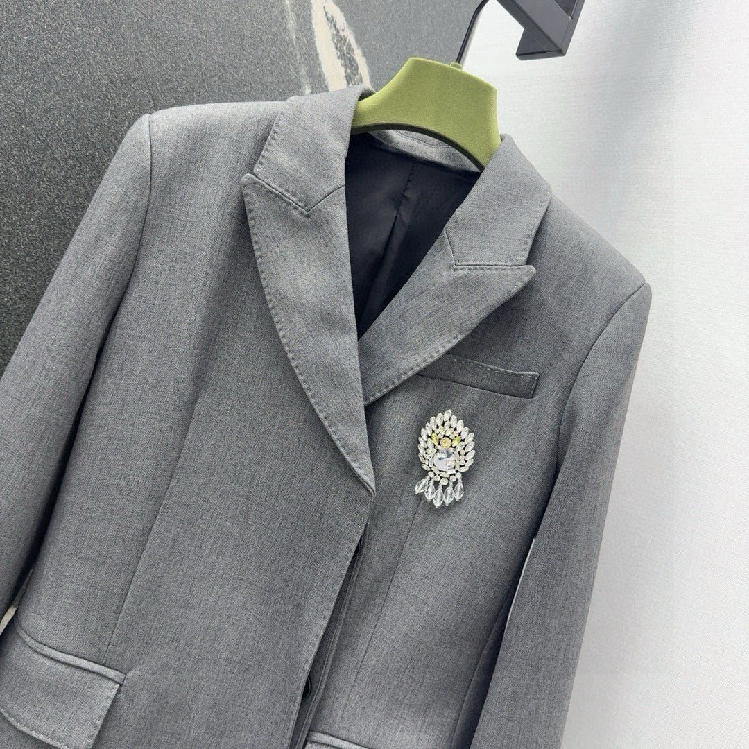 Gucci Suit Jacket Gray Polyester Fiber